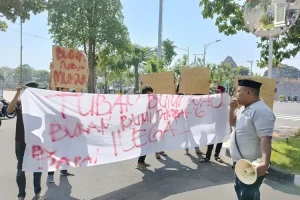“Mulai hari ini kita mengingatkan tambang-tambang ilegal harus segera ditutup, jangan ada pembiaran,” kata M Soleh Ketua JAPAI dalam orasinya saat menggelar aksi demo di depan kantor Pemkab Tuban, Jumat (18/07/2025).